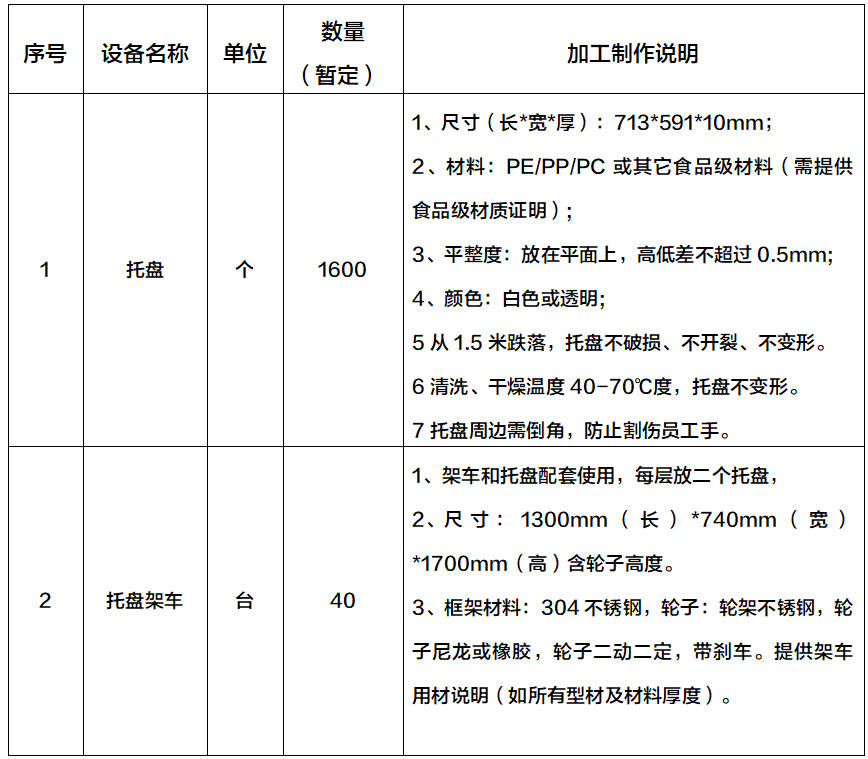 2.3因接触药品,托盘材质需要食品级,并能提供材质证明报告。